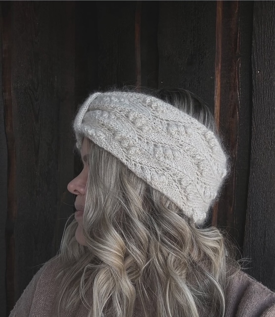 Bluebell_twist strikkes ved hjelp av magic loop, rundt som en lang tube. Dette er for at pannebåndet skal være dobbelt, og sikre ekstra varme rundt ørene. Det er glattstrikk på innsiden, mens utsiden har et pent strukturmønster. Den festes ett bånd rundt for en fin twist.