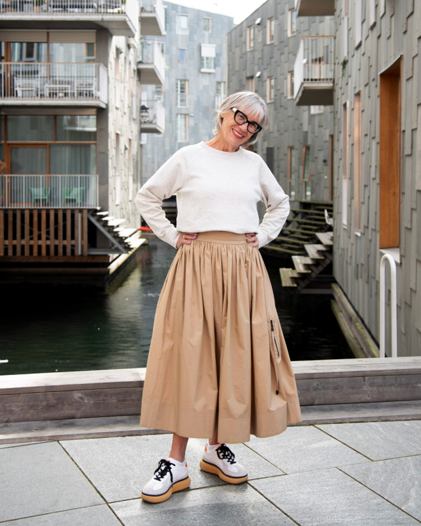 Du kan også forenkle dette skjørtet i forhold til hvordan vi har laget det. Du kan sløyfe både stikklommene og bomber lommen, hvis du ikke vil lage disse.